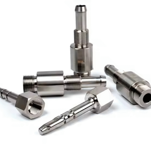 CNC lathe to rotate a workpiece while a cutting tool removes material to create cylindrical parts like fasteners, fittings, and couplings